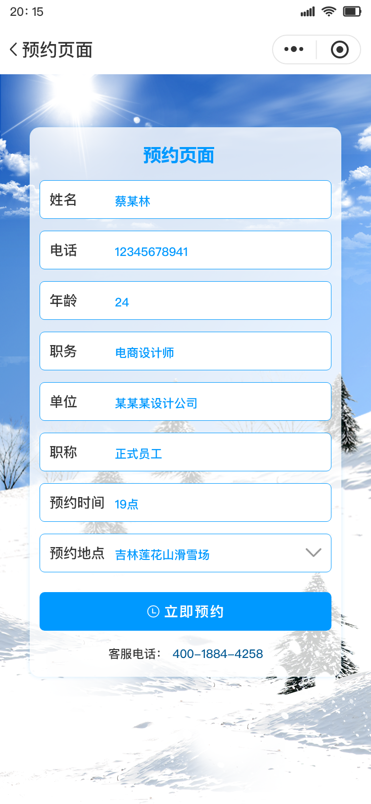 预约到店滑雪