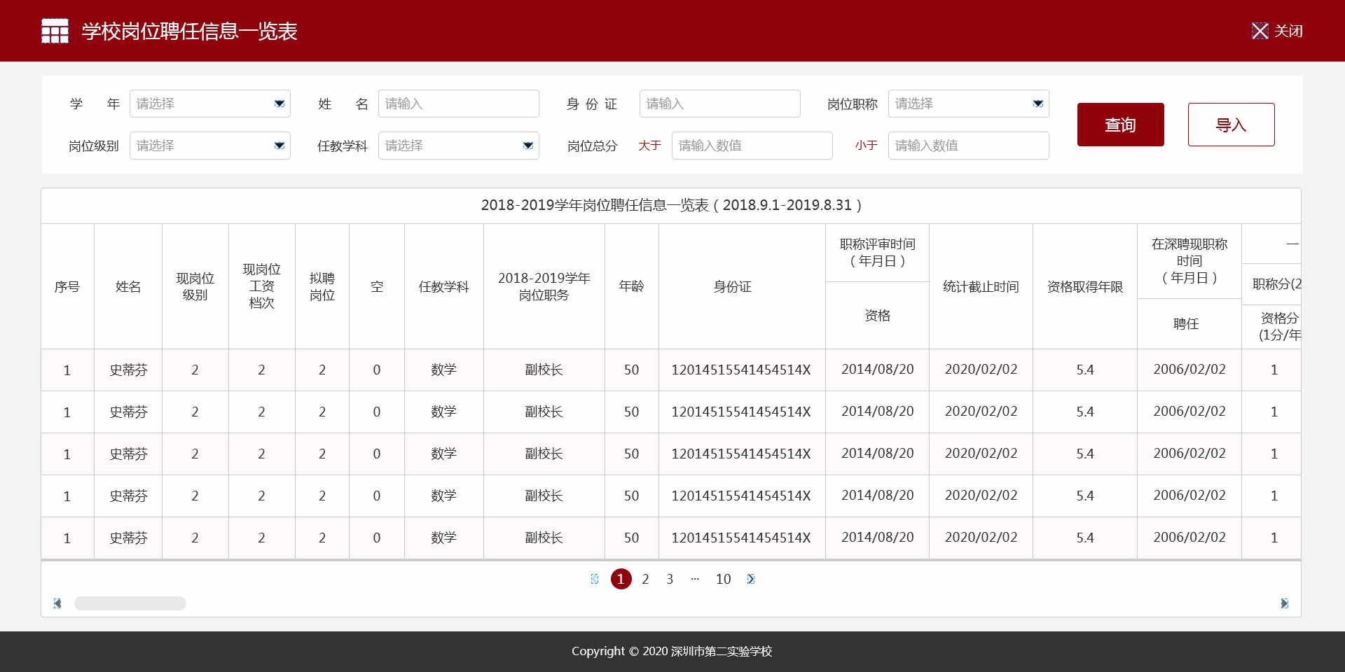 深圳市第二实验学校岗位聘任管理系统