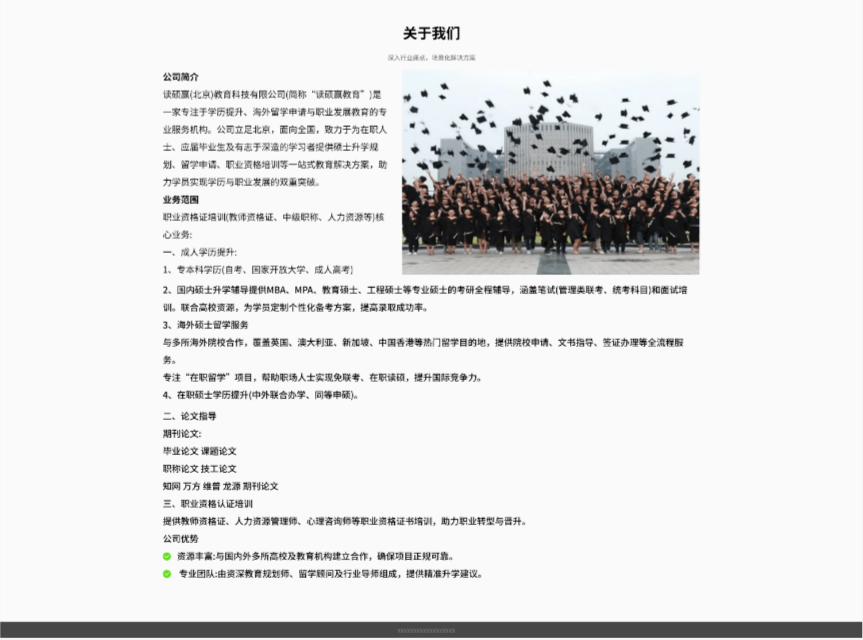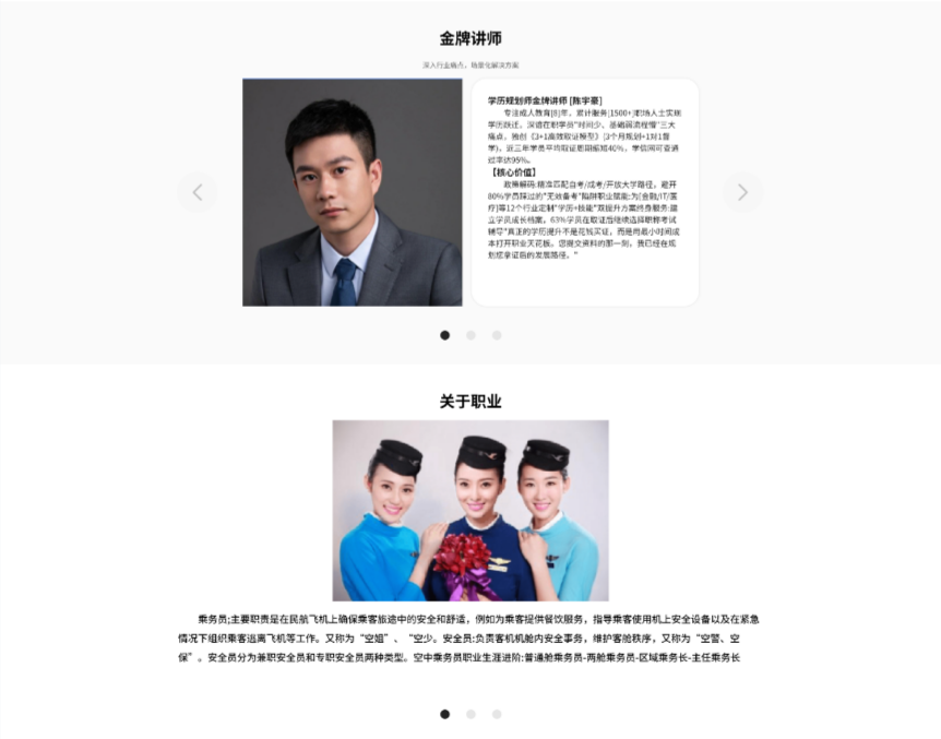 学历网展示平台,可以展示具体业务,师资力量,就业发展,机构介绍