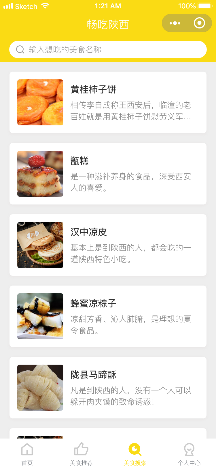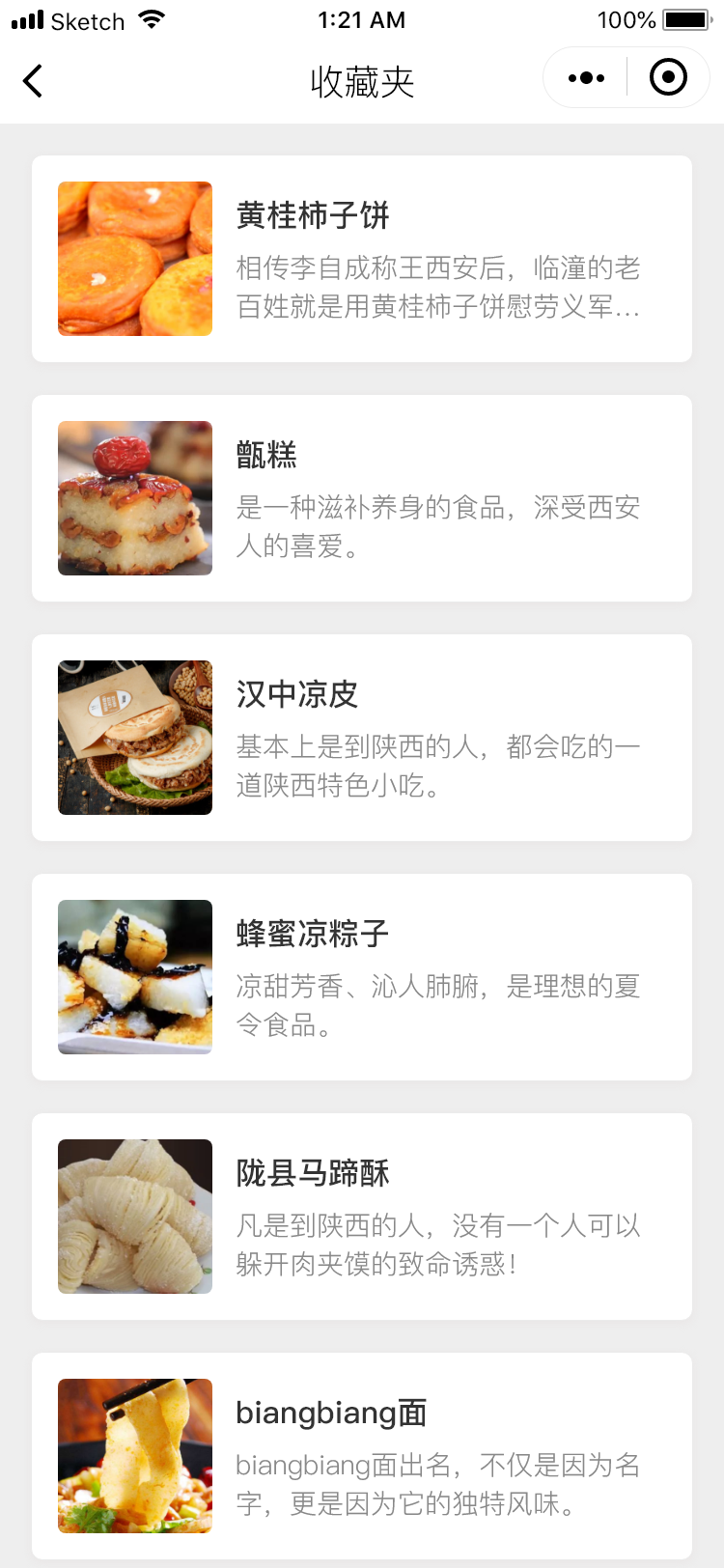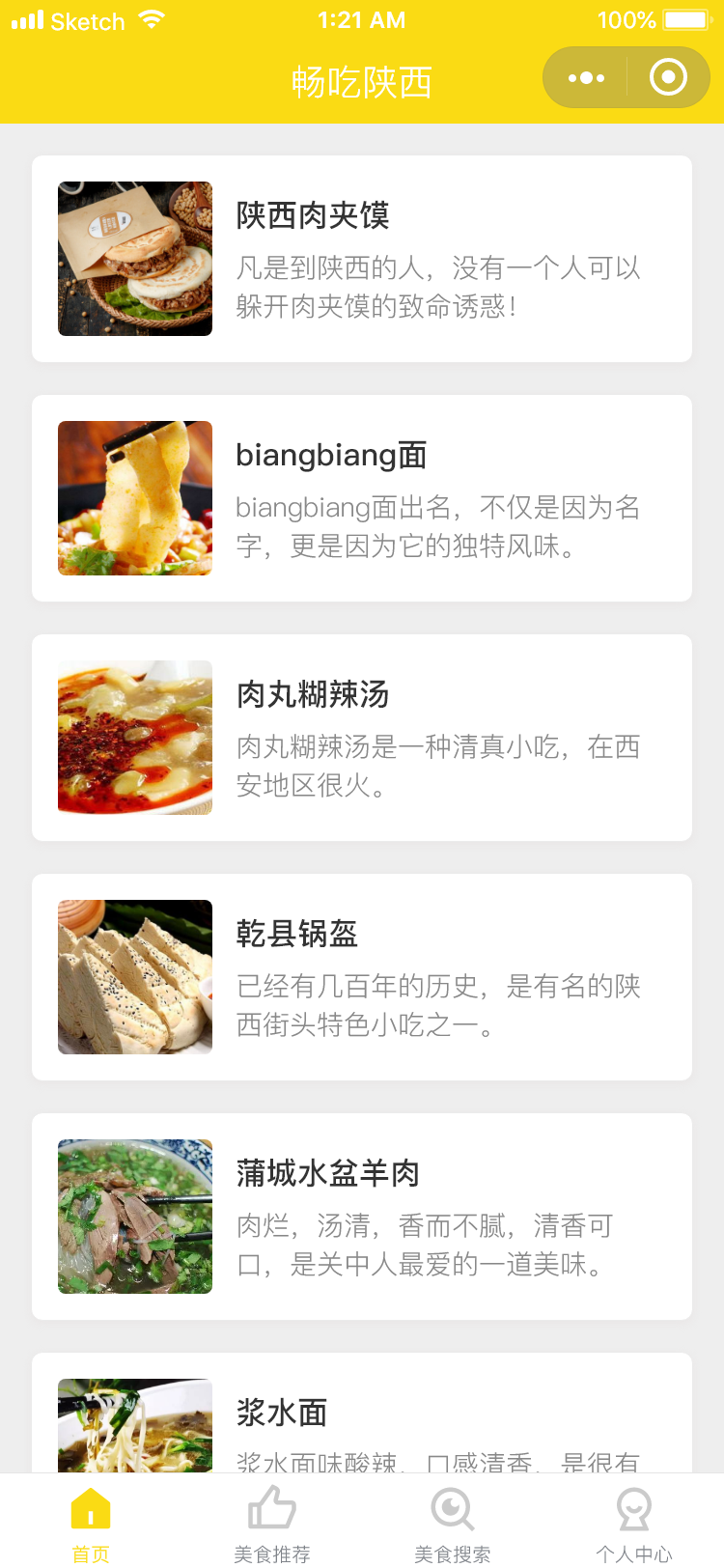 主要是介绍美食的展示类小程序,然后还有一个榜单,显示人气最高的美食的排名,点击查看详细的信息