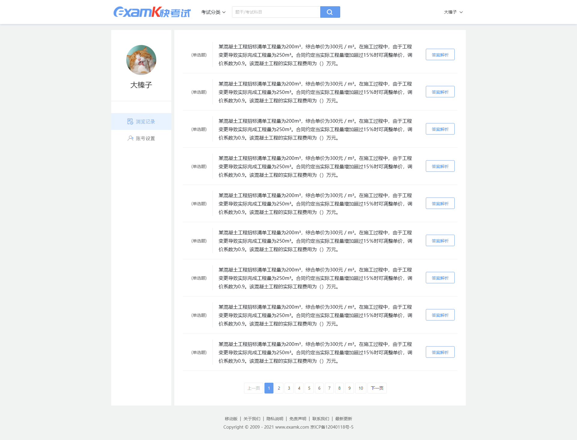 主要实现的是功能的百度微信账号登录,题库查看,选择对应的试卷进行考试,考完以后可以查看得分还有试题的解析,个人信息报错浏览记录等