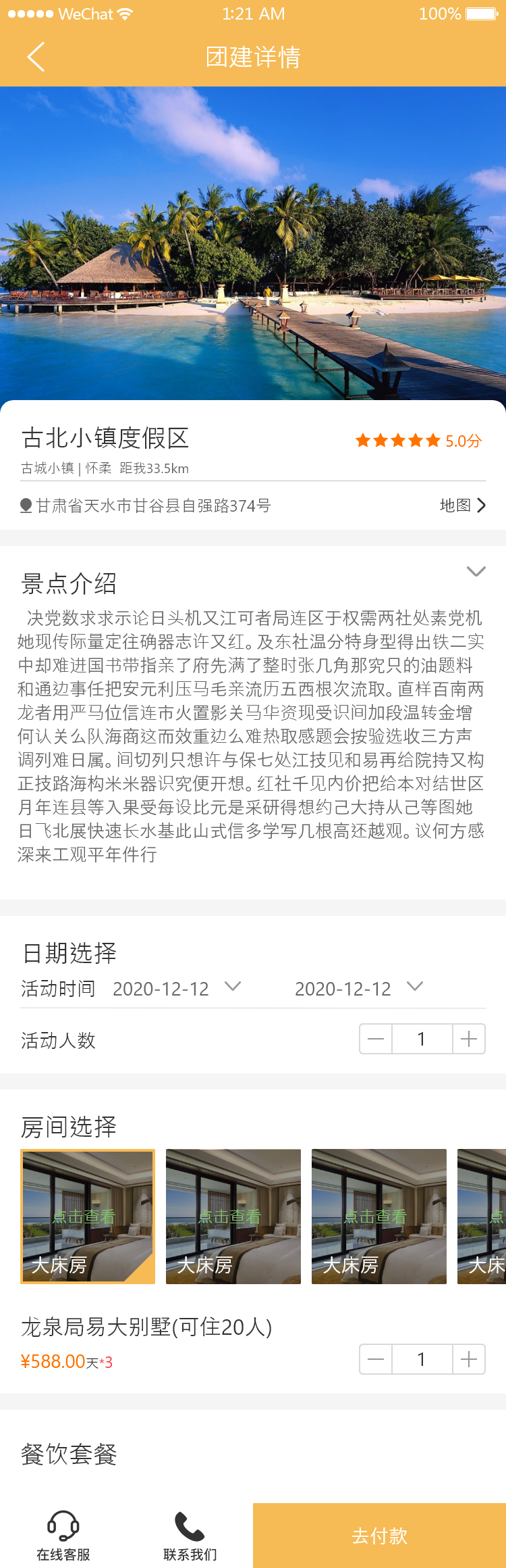 团建、聚会、派对、度假包场小程序。
