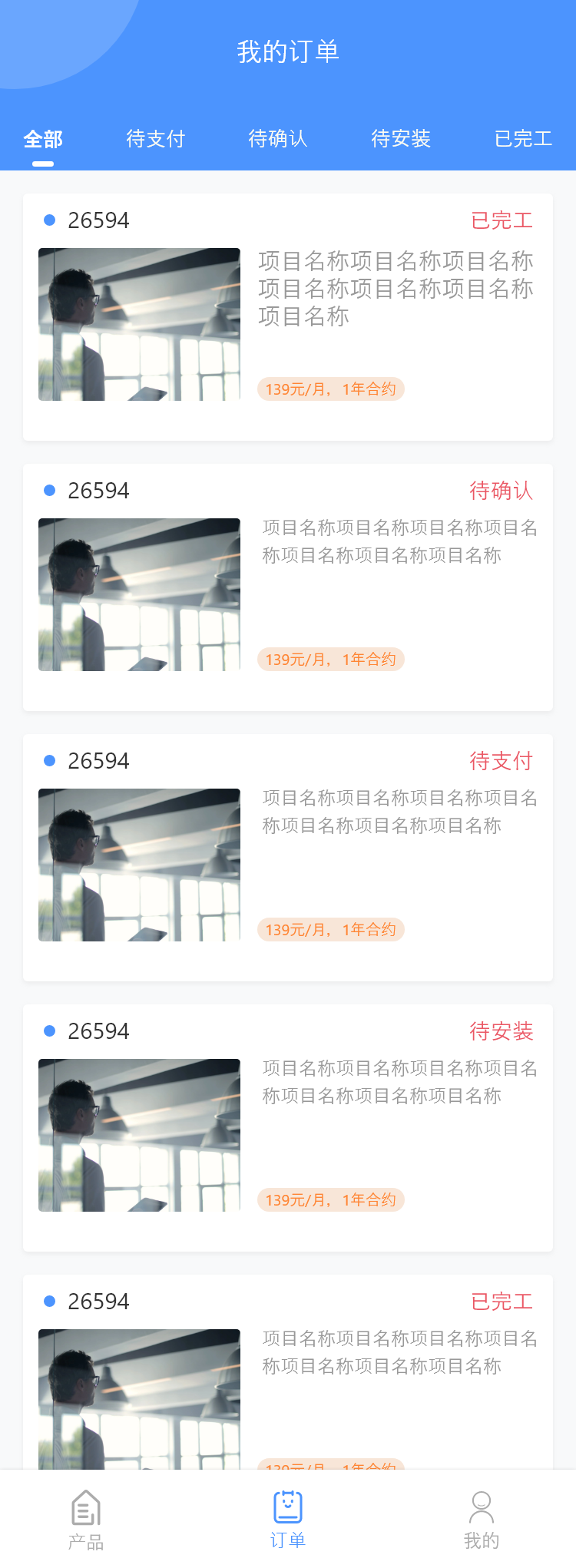 实现3端操作 下单 生成海报 联系客服 分享 信息录取 地址选择 查询套餐 公告 已完工 待确认 待支付待安装 兑换 客户订单展示 公告消息通知 查询合伙人 订单榜 登录 注册
