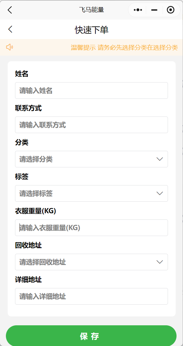 这是一款专注于二手衣物回收的公益型服务小程序平台,核心围绕 “用户便捷下单回收 + 收货商上门对接 + 平台统筹管理” 的闭环流程,整合定位匹配、订单跟踪、公益基金管理等功能,既为用户提供高效的二手衣物回收渠道,也为收货商搭建订单承接平台,同时通过公益明细与凭证公示传递公益价值。 核心功能 一、