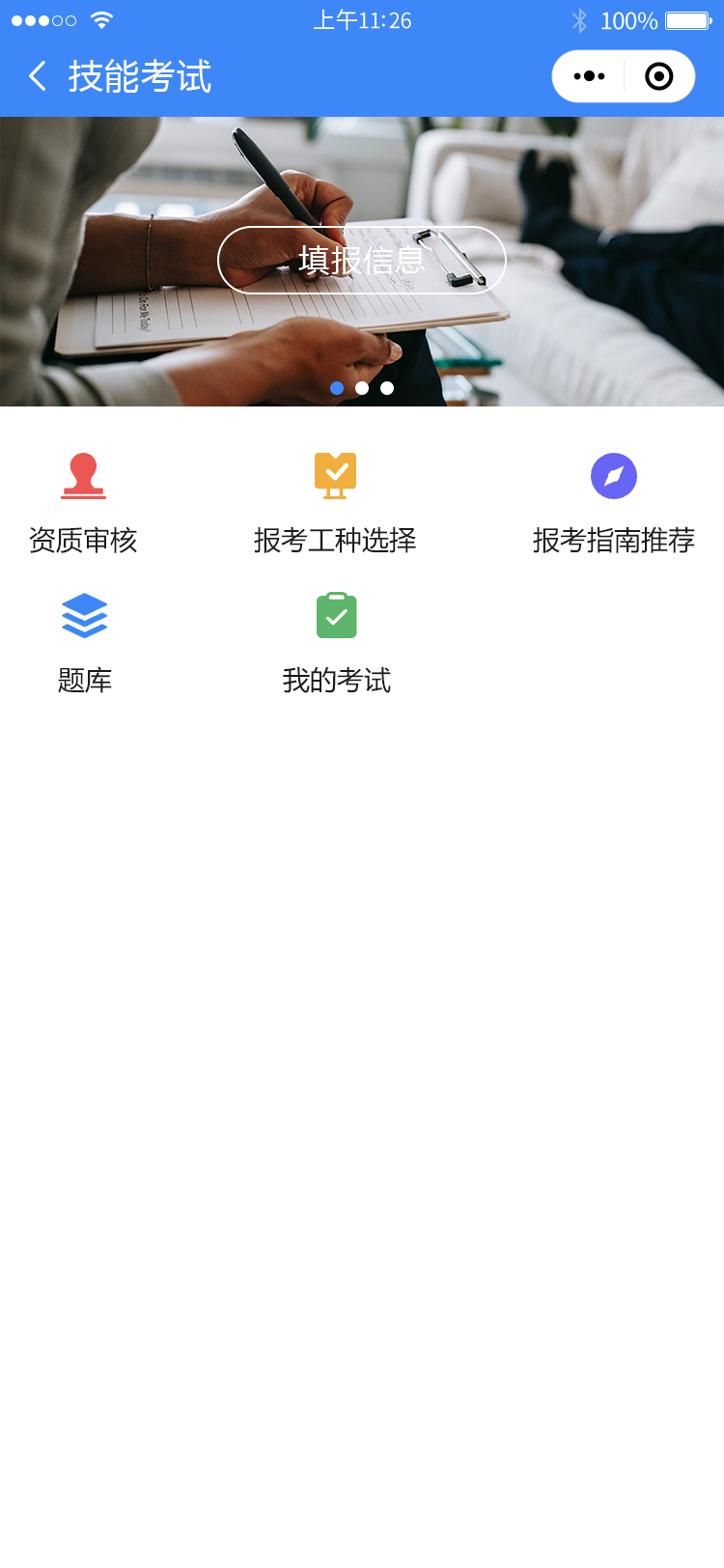 我们是一个专业的技能考试报名平台,致力于解决双边工人需持证上岗,公司需持证员工的问题,为您提供方便快捷的在线报名服务。使用平台可以极大的帮助工人便捷快速的获取证书,帮公司最大限度的解决招工问题,并且还有介绍返佣模式,平台可以快速获得大面积推广使用在我们的小程序中,您可以轻松查询各种技能考试的报名信息