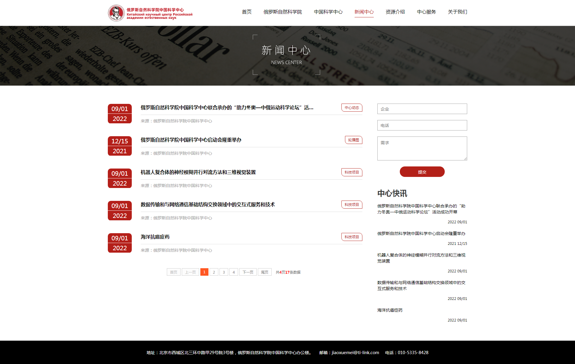 网站是俄罗斯自然科学院中国科学中心的官网,主要展示了组织的地理位置、章程、宗旨、主要人员、组织结构、组织资讯等多种内容,设计精美大气,结构合理。