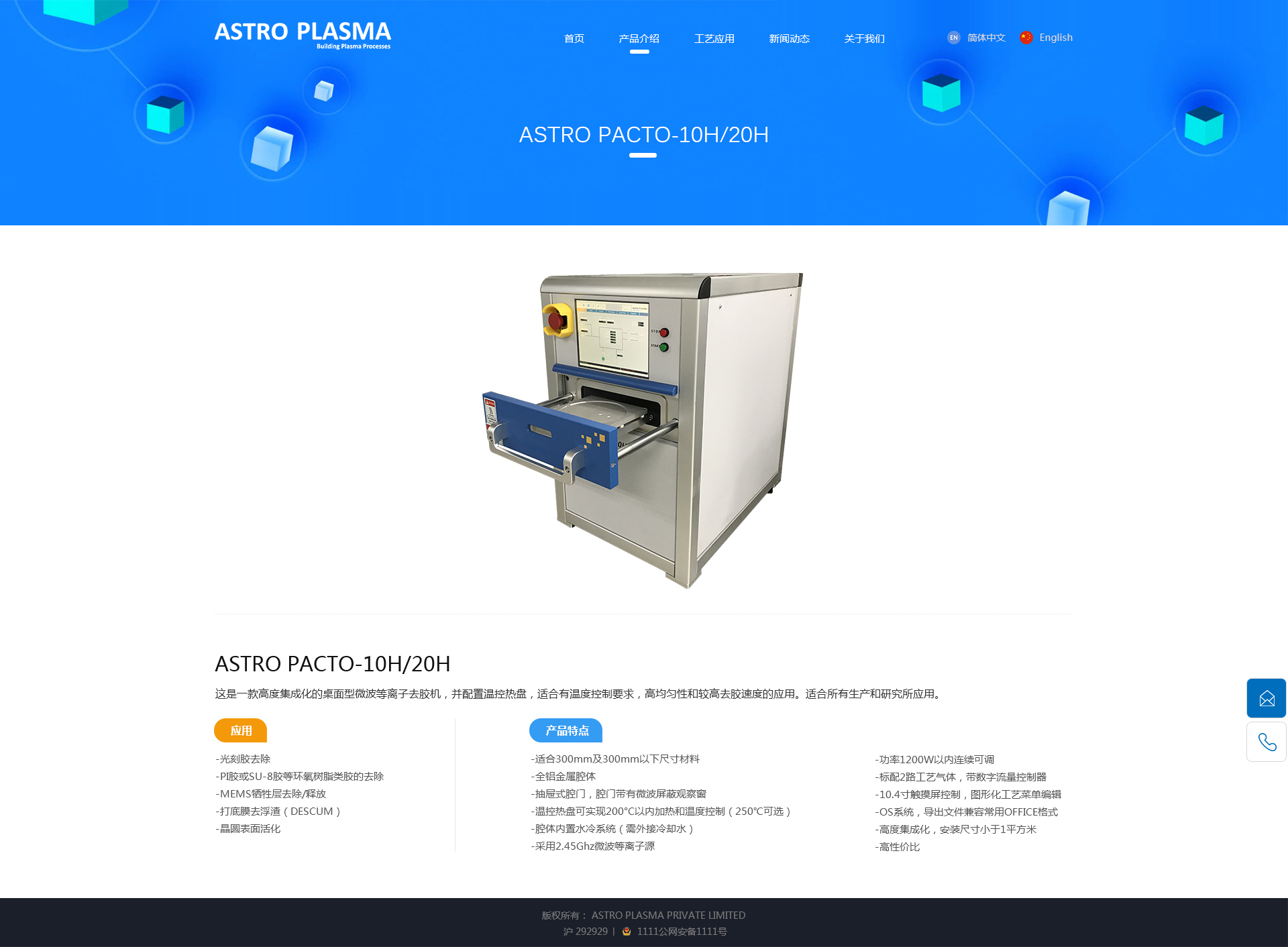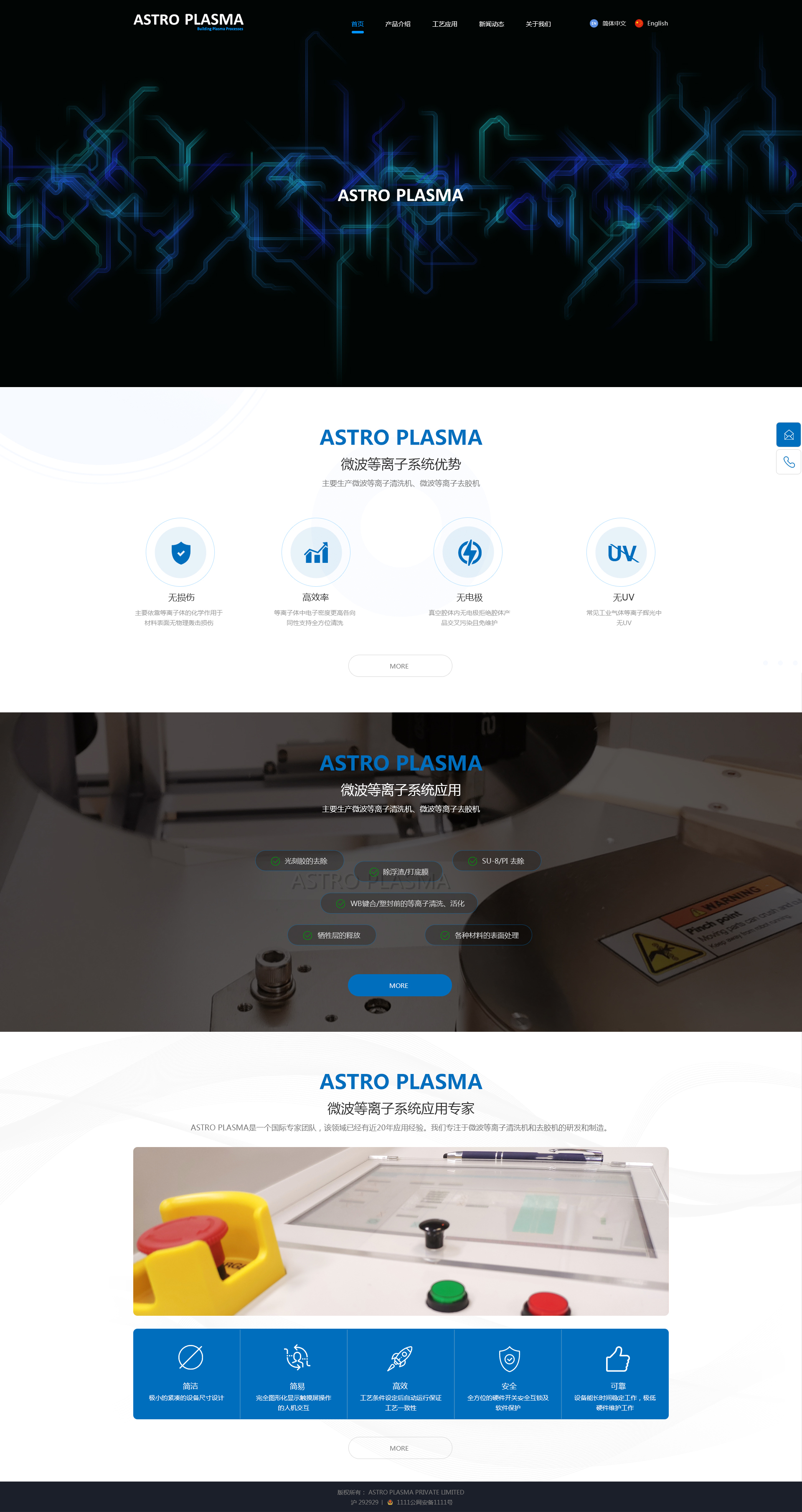 网站包含了首页、关于我们、产品介绍、工艺应用、新闻动态栏目,主要介绍了ASTRO PLASMA团队和其产品内容,方便用户更好的了解相关知识和产品源码定制,纯手工CSS,符合seo优化,提升谷歌百度排名。