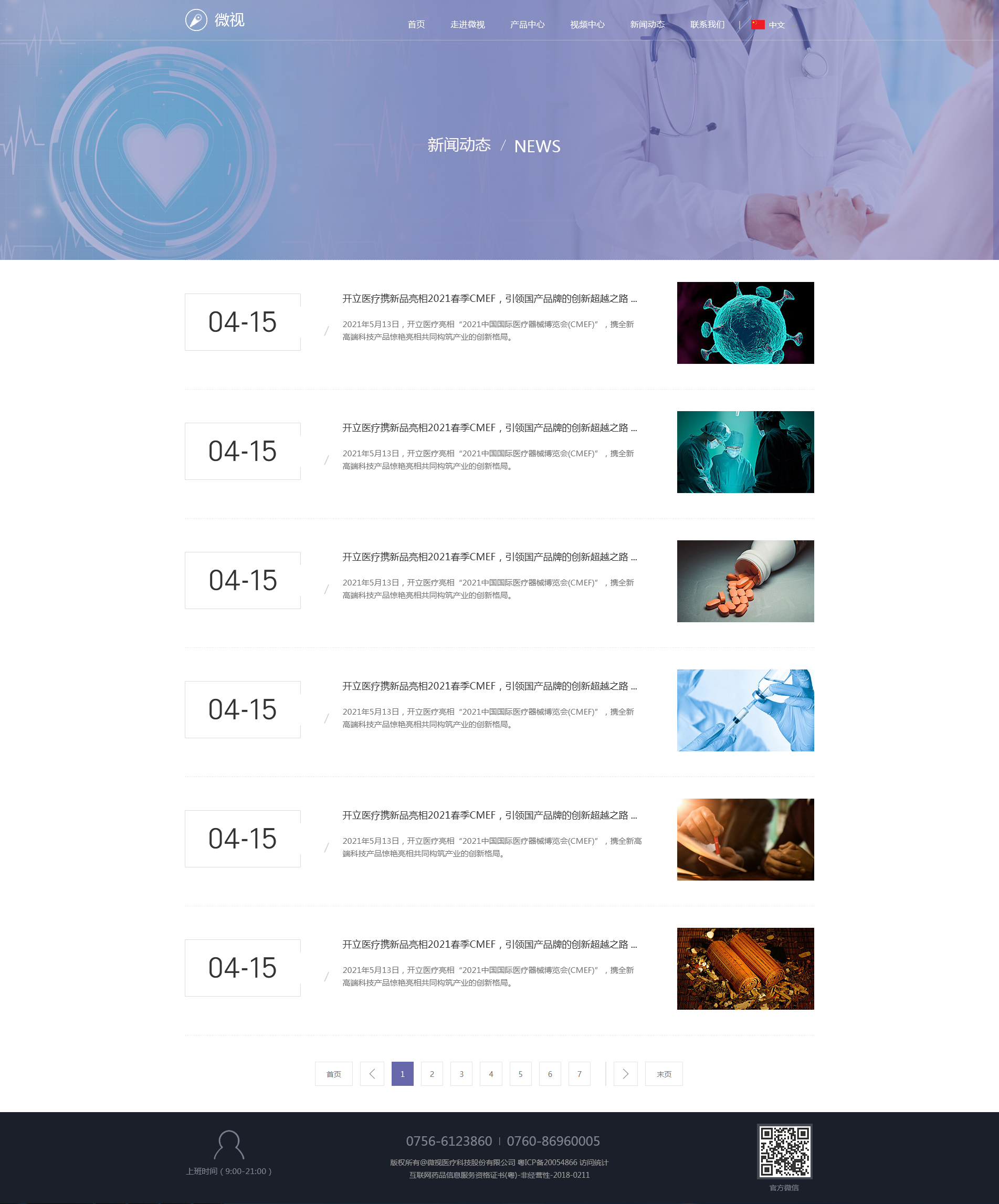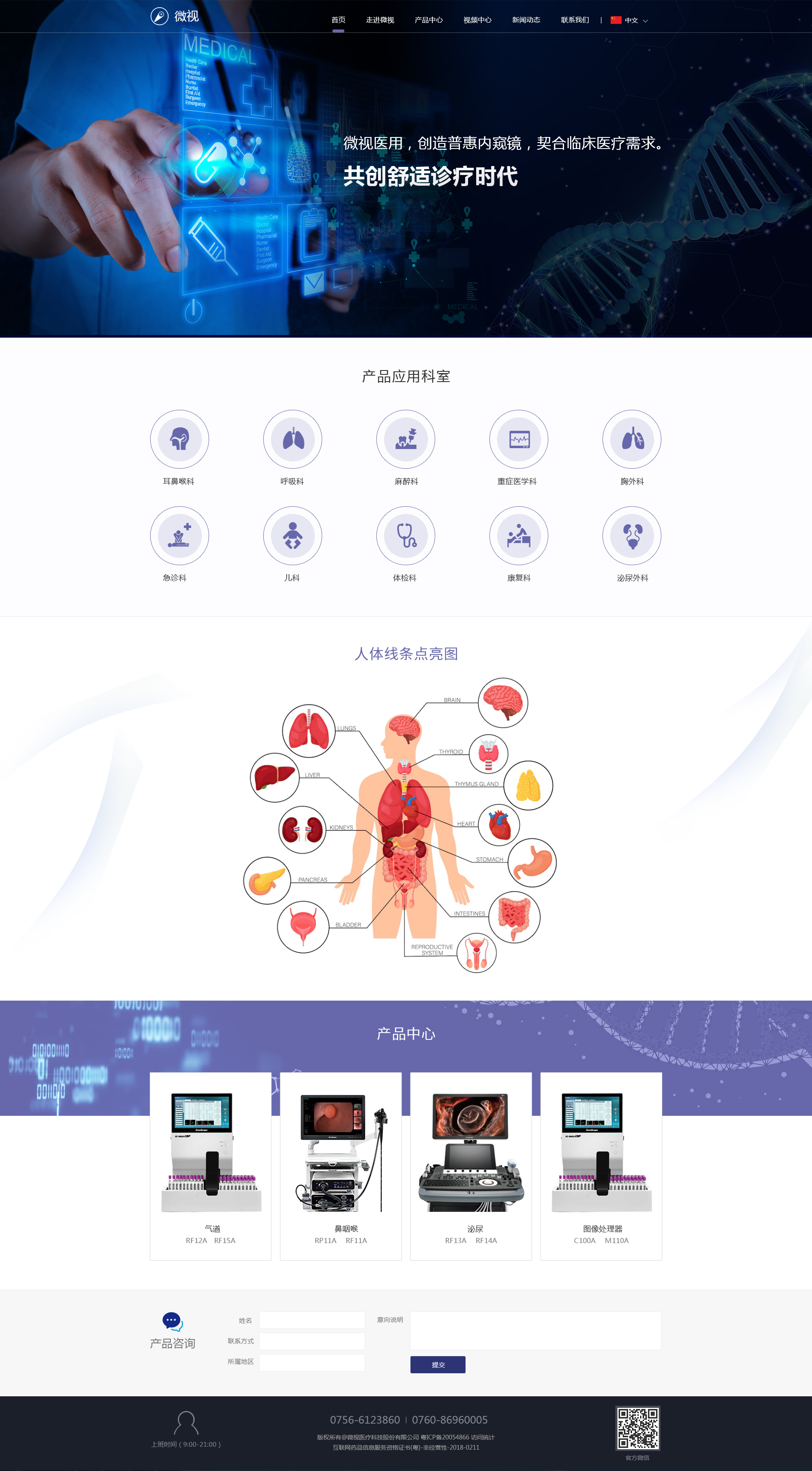 医疗器械类型,展示公司介绍,产品信息,最新资讯等内容的响应式企业官网!