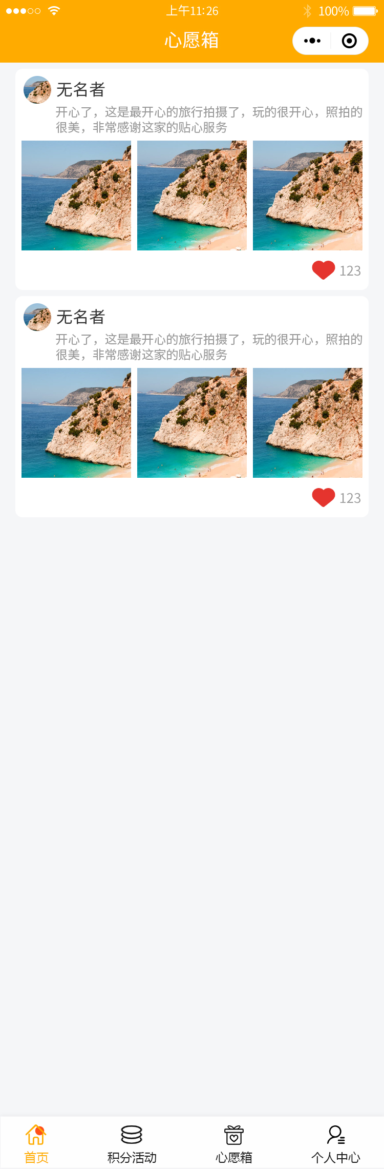 这是一款以积分体系为核心的互动兑换类平台,聚焦 “互动获积分、积分换权益” 的核心逻辑,整合活动参与、心愿互动、积分管理等功能,为用户提供集互动、激励、兑换于一体的服务场景。核心功能 首页基础功能:支持搜索(可查找活动、兑换商品等);轮播图展示热门活动、兑换福利等重点信息;按类型分类展示内容(如活