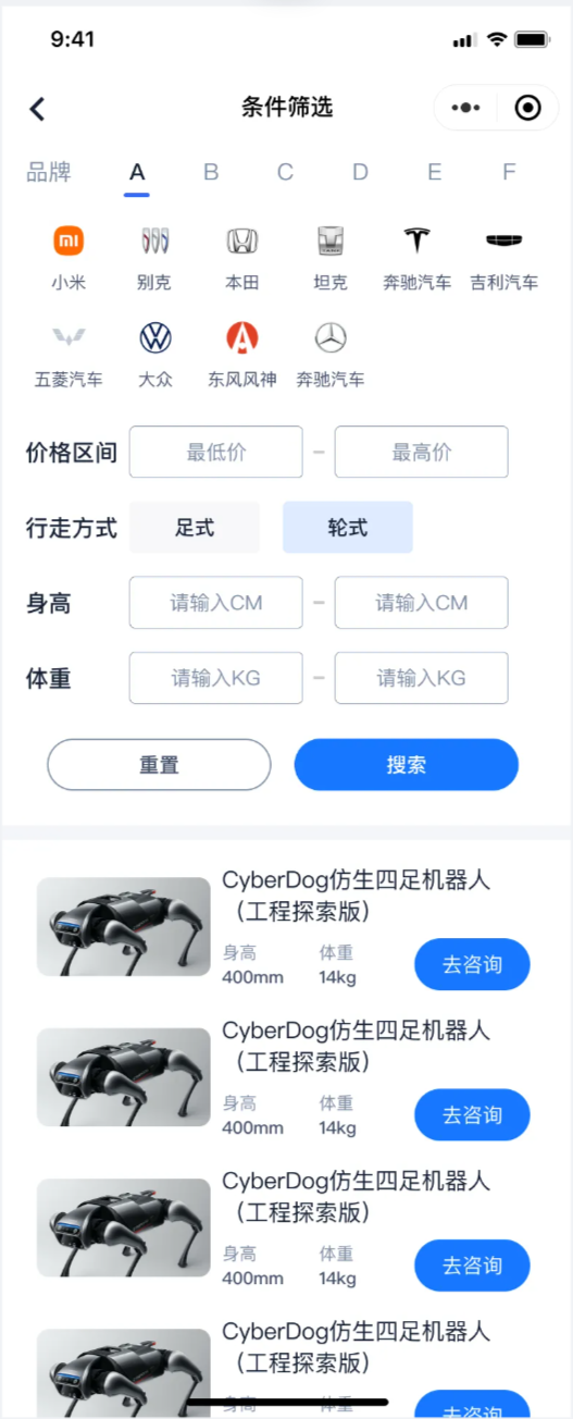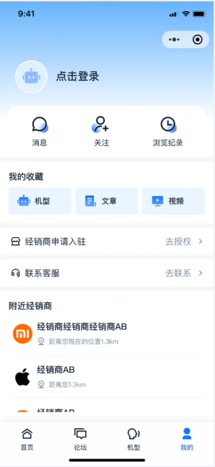 机器人之家咨询站 PC端响应式 登录 微信扫码登录 短息验证码注册登录 参照小程序功能 首页展示小程序基本模块瀑布屏三种信息混合展示 图文文章 经销商视频 产品信息 手机端响应式 参照小程序功能 小程序 登录 支持静默浏览,进入详情页时微信授权一键登录 授权定位
