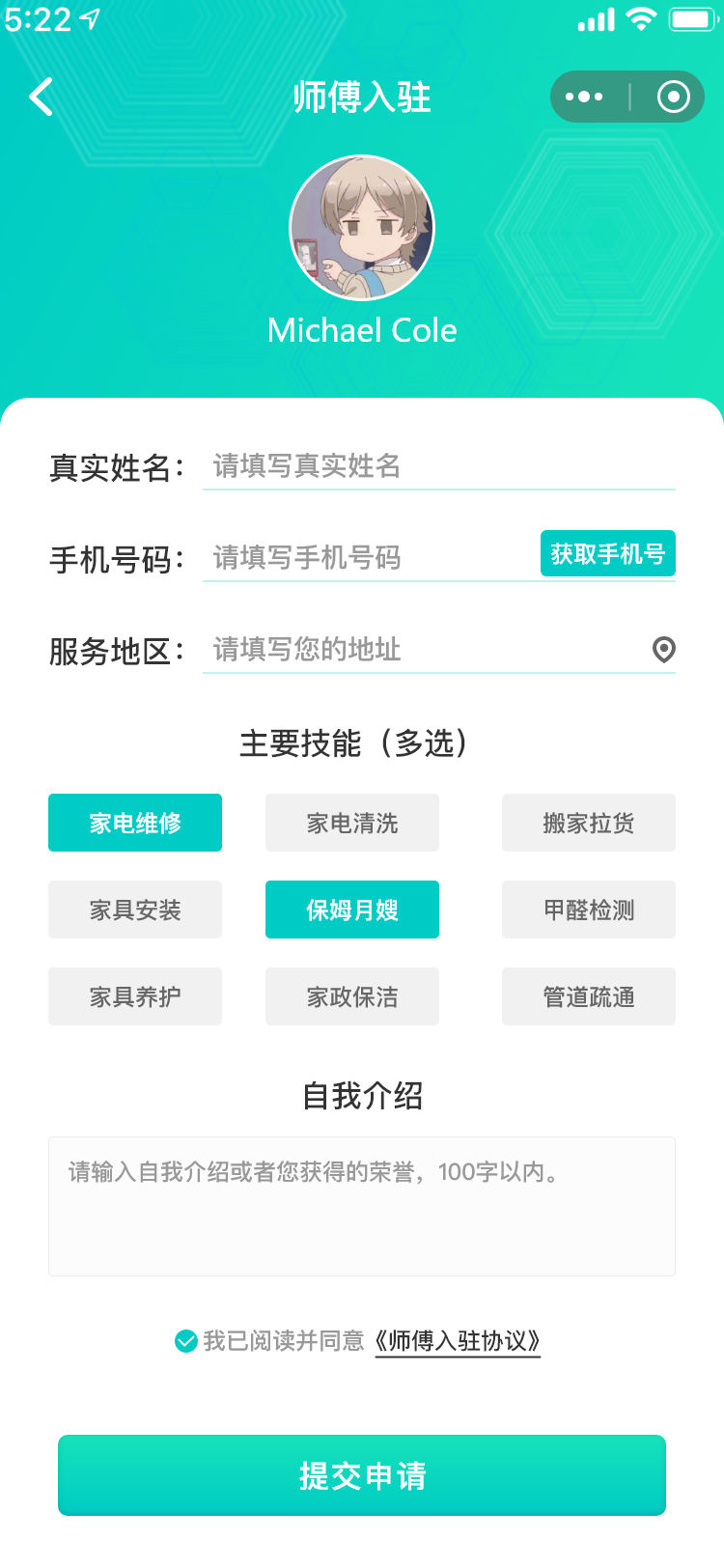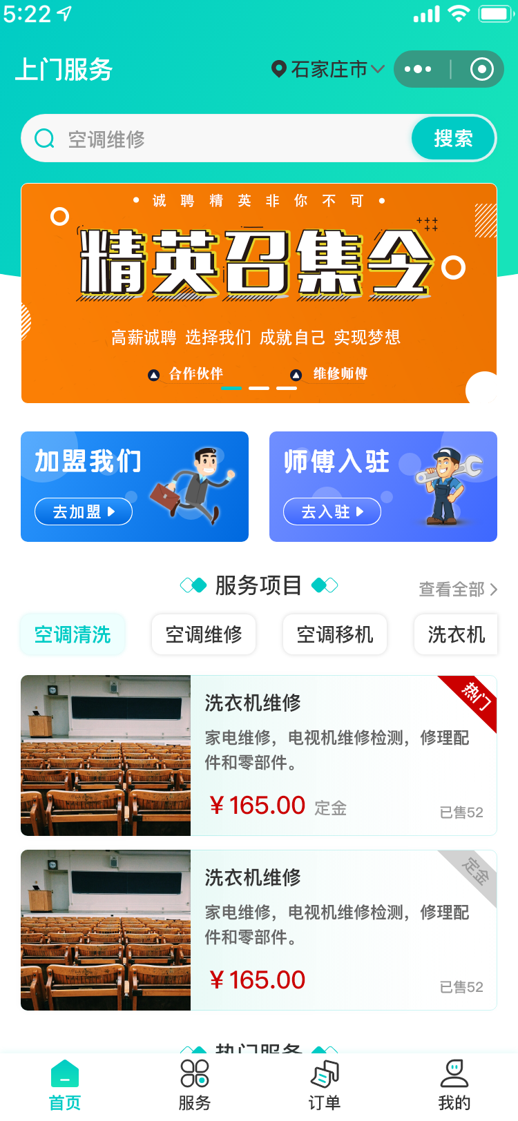 这是一款本地生活服务对接平台,核心连接有服务需求的用户、提供服务的商家/师傅,整合服务展示、订单管理、加盟入驻等功能,实现服务需求与供给的高效匹配。核心功能首页核心入口:支持关键字搜索服务,轮播图展示广告;提供商家加盟、师傅入住申请通道,实时查看审核进度;按业务类型分类展示服务,按热度推荐热门业务,