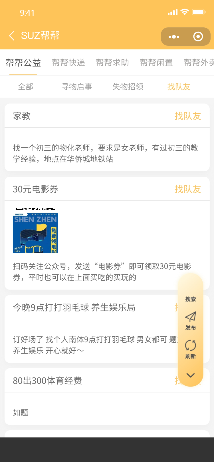 这是一款本地生活互助服务平台,围绕居民日常需求打造多元化互助场景,提供公益、跑腿、闲置交易等一站式生活服务。核心功能多元化互助服务帮帮公益:发布失物招领、寻物启事、组队搭子等信息;帮帮快递/外卖:发布代取快递、代取外卖的跑腿需求;帮帮求助:发布各类生活求助信息,寻求他人帮助;帮帮闲置:发布二手闲置物