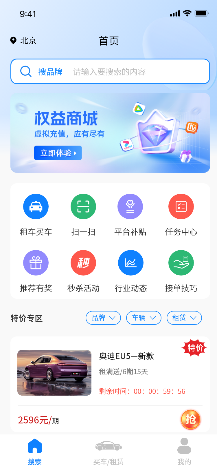 这是一款面向网约车司机及相关从业者的车辆租购与综合服务小程序平台,整合车辆租赁 / 购买、优惠活动、车友社区、商户 / 合伙人合作等核心功能,搭配商户后台与总后台实现分层管控,为司机提供一站式车辆解决方案,为平台方搭建规范化的用户、订单与资源管理体系。 核心功能 一、 小程序端功能(面向司机用户