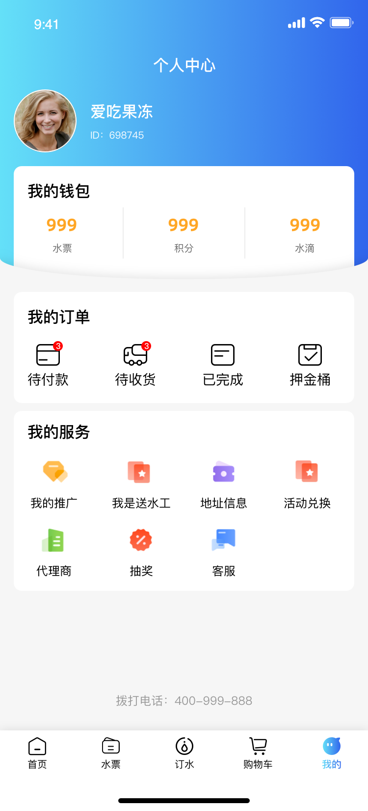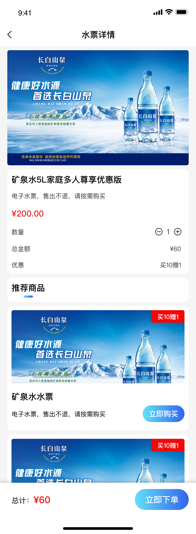 桶装水商城,有同城配送服务,积分抽奖送礼品。邀请新用户送积分,邀请新用户购买可得佣金提现
