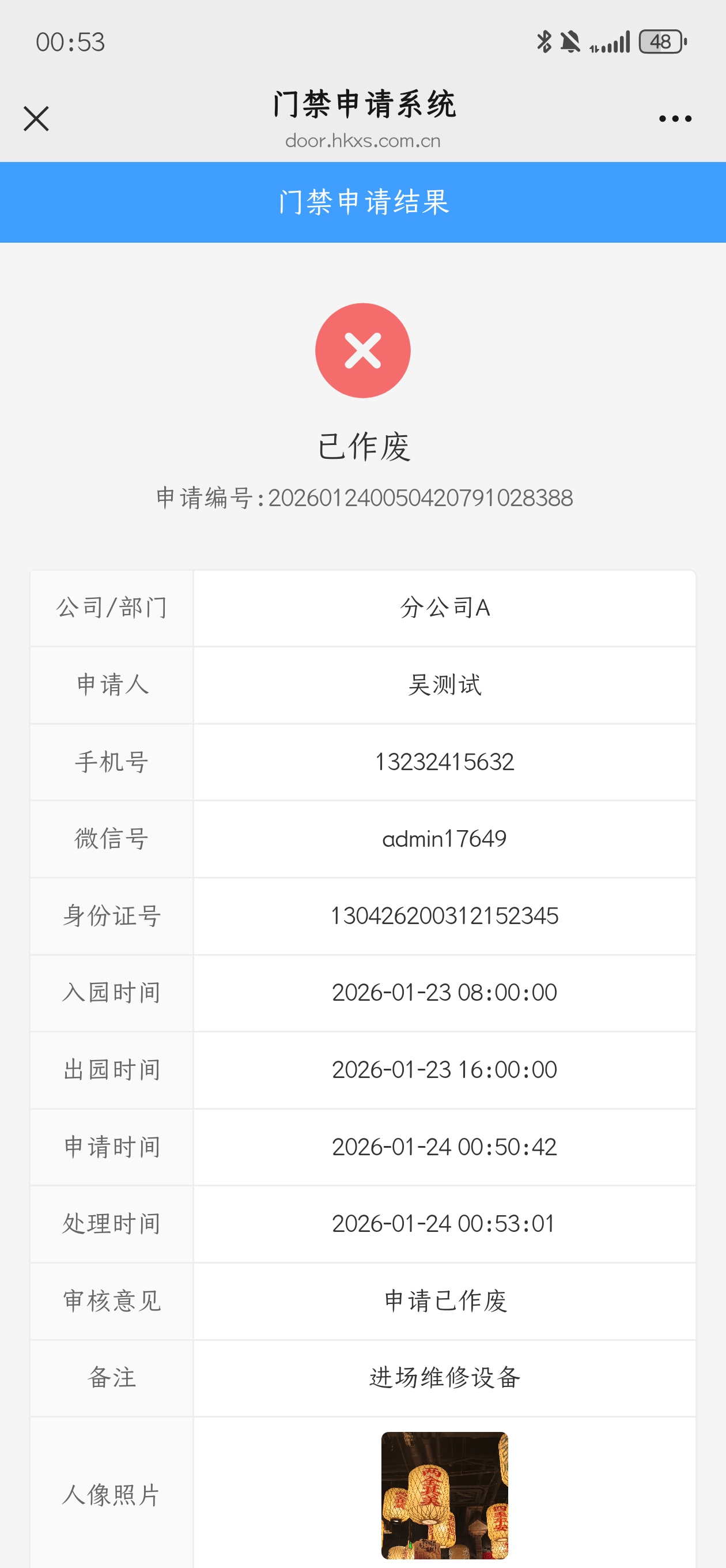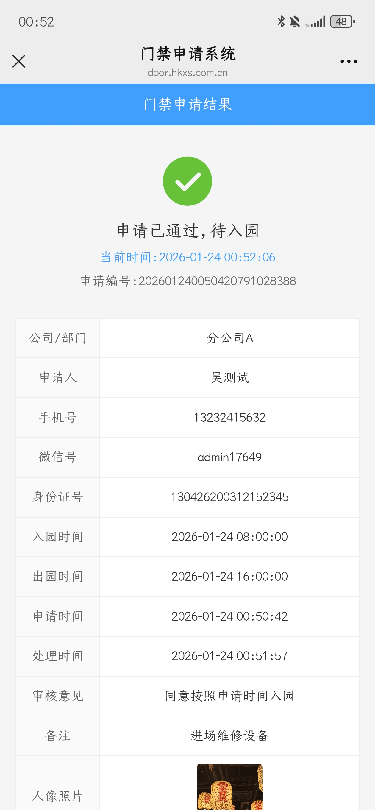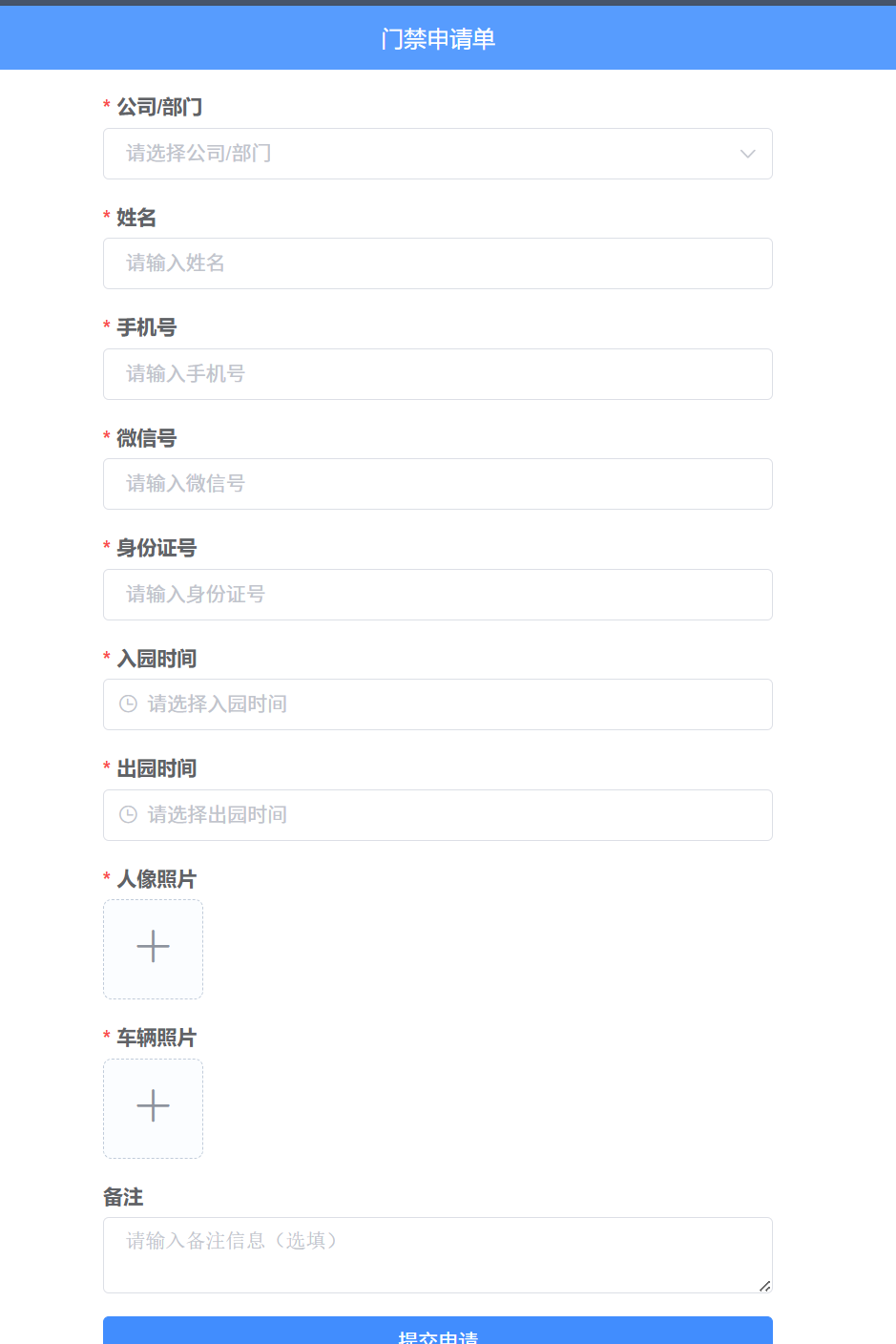 一、平台类型这是企业 / 园区门禁线上申请与审批管理平台(基于网页 / 微信端的轻量型门禁管理系统,域名为door.hkxs.com.cn,属于企业 / 园区内部的数字化门禁管控工具)。二、解决的核心问题 流程效率:替代线下填表、人工审批的繁琐流程,实现门禁申请线上化,缩短审批周期。 权限管控:
