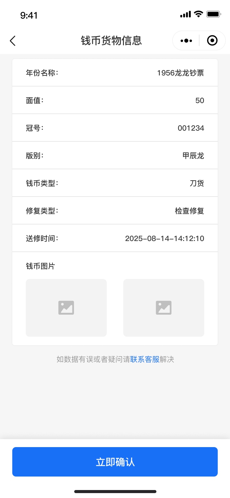 客户(钱币收藏者/投资者)需要通过专业修复提升钱币品相,并通过权威评级(如PMG)鉴定真伪、确定等级,以提升其收藏价值与市场流通性。 项目主要适用于有送评需求的钱币收藏爱好者、投资者,以及提供修复和评级服务的相关机构。 项目亮点在于实现了送修、送评的线上化与流程自动化。它通过小程序整合服务,利用