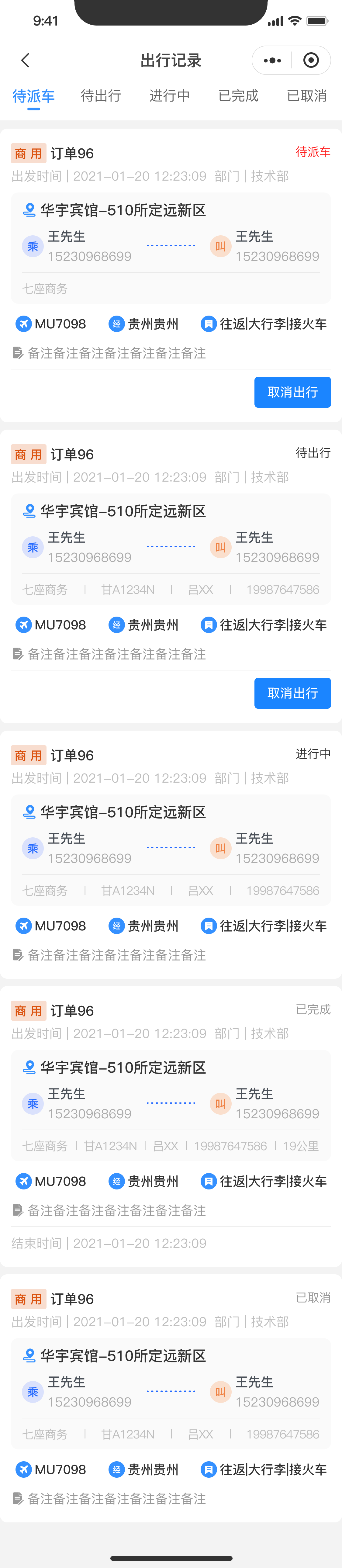 1、登录注册用户微信授权登录,首次登录需要认证,提交之后后台审核。2、预约用车填写用车信息及用车时间,平台派车。3、后台管理系系统用户管理:用户审核、用户审核司机管理:类型管理、司机信息订单管理:待派车:用户下单指派司机待出行:分配完之后进入玩该状态进行中:司机点击接到乘客按钮进入该状态已完成:司机