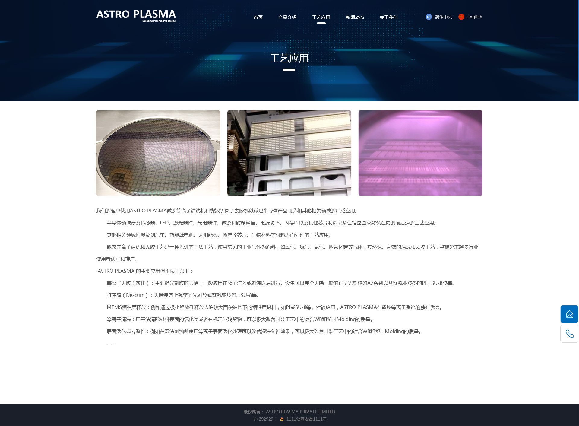 网站包含了首页、关于我们、产品介绍、工艺应用、新闻动态栏目,主要介绍了ASTRO PLASMA团队和其产品内容,方便用户更好的了解相关知识和产品源码定制,纯手工CSS,符合seo优化,提升谷歌百度排名。