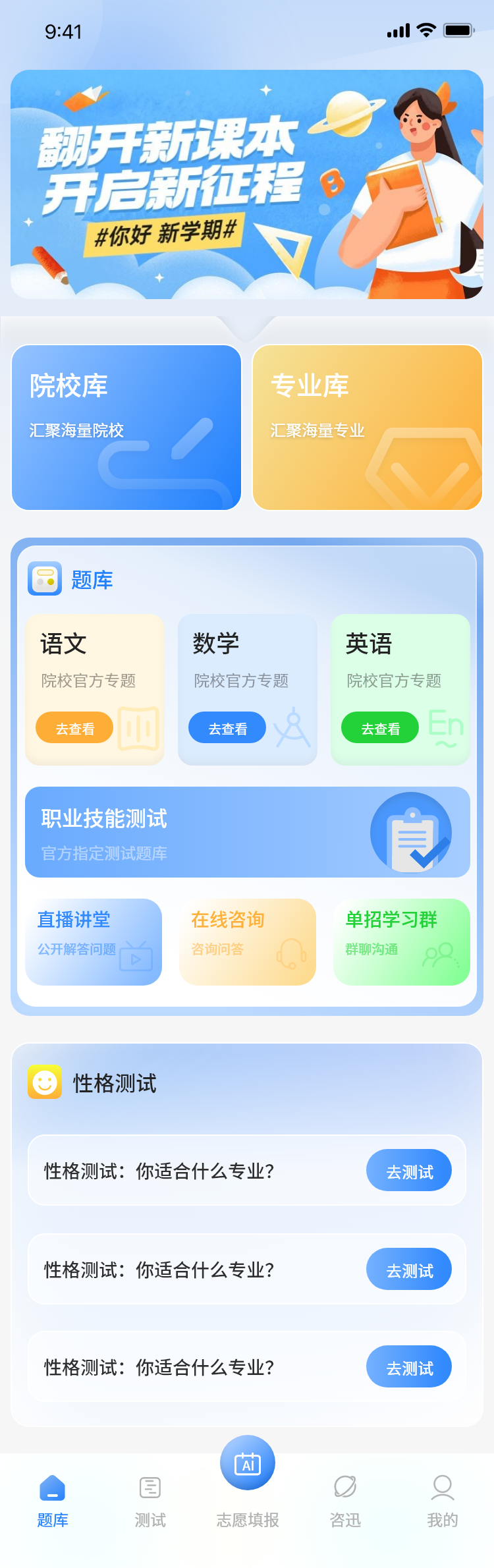 这是一款聚焦升学填报的专业指导与备考辅助平台,整合题库练习、模拟测试、志愿填报指南、院校专业查询等功能,为学生升学提供全流程支持。 核心功能 便捷登录:支持微信授权登录,可获取手机号并填写学生基本信息完成注册;升学填报指导:选择专业大类、输入真实分数及专业课分数,获取填报建议并选择适配院校;支持