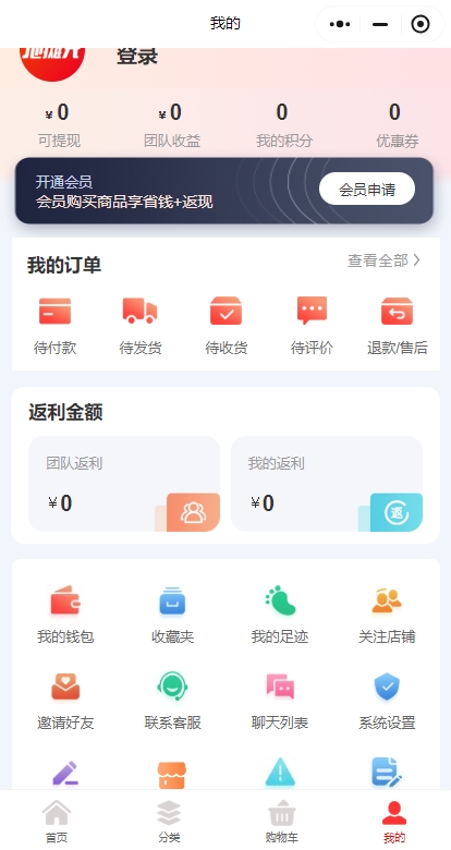 这是一款融合商品交易、积分体系与分销分红机制的电商平台,以区间产品售卖为核心,通过推荐奖励、区间分红等分销逻辑,实现用户、分公司、总公司的多方收益联动,兼具购物与创业属性。核心功能基础电商功能登录注册、个人信息管理(含实名认证、资料提交);首页轮播图公告、商品分类与列表展示、商家/商品信息查看;购物