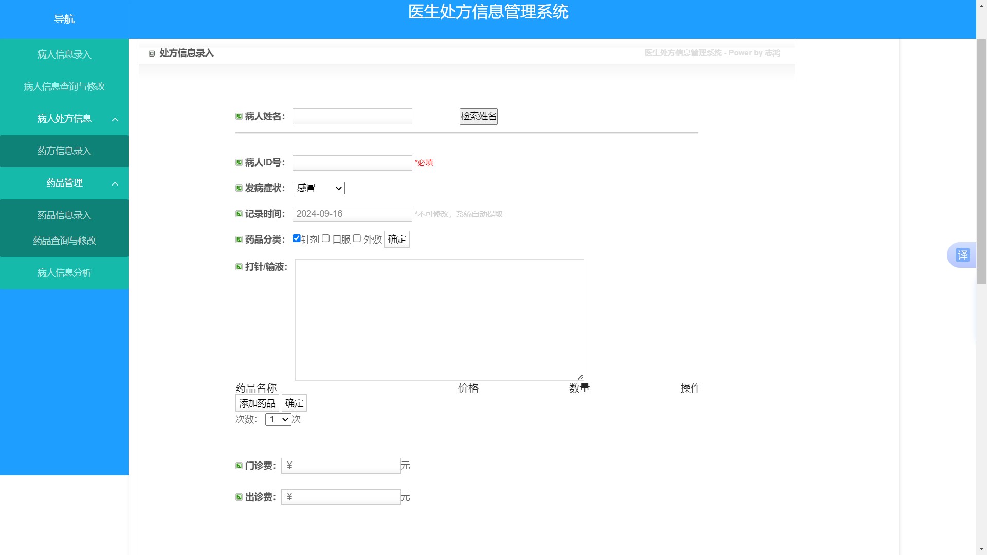 农村医生在线给病人开处方信息管理系统,包括病人信息管理,药品信息管理,处方信息管理,统计数据等